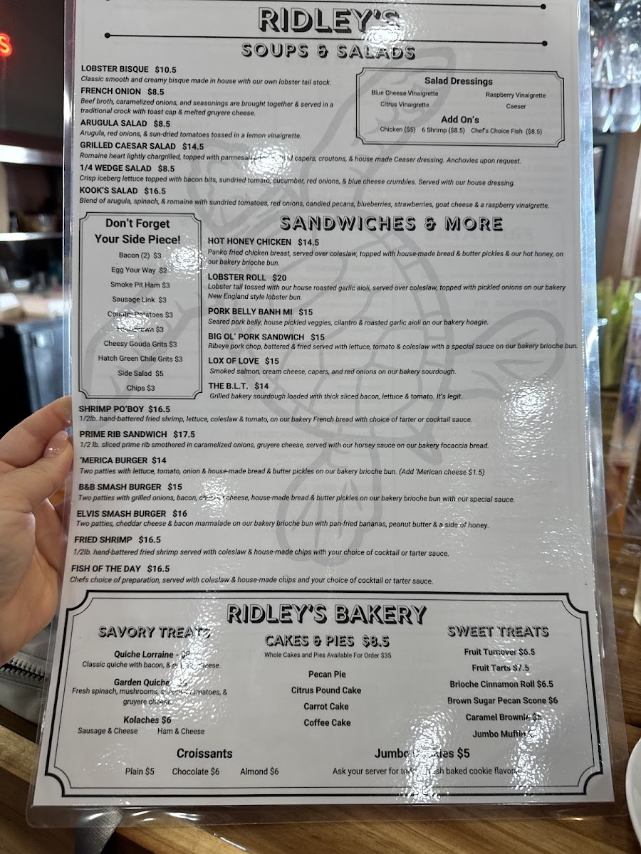 With exceptional service and an inviting atmosphere, Ridley's has quickly become a favorite for locals and visitors alike, making every meal here a rewarding culinary journey.